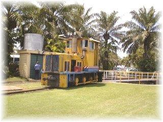 この機関車がトロッコみたいな車両を引いて 1時間に1本走っています |